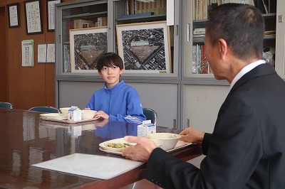 今日のメニューは、きなこ揚げパン、スティック野菜、わんたんスープでした。