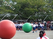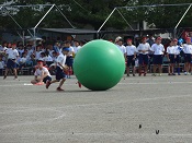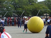 自分の身長ほどの大きな玉を頑張って転がしました。