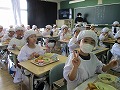 久しぶりの給食に子供たちは時間前からうきうき・わくわくしているようでした。感染症の拡大防止に気をつけながら、みんなで協力して準備や配膳をし、いよいよ「いただきます」の時間です。