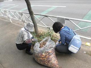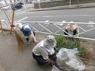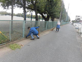 学校周辺の落ち葉はきや除草作業を行いました。