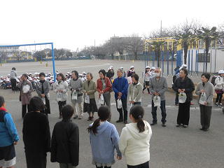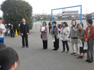 本校では、4年生の児童が、花の苗を鉢に植え替え、毎日交替で水やりをしました。また、元気になって欲しいと心を込めて手紙を書きました。そして、本日の引き渡し式では、4年生代表児童6名が参加し、民生児童委員の方々に思いを伝え、花と手紙を引き渡しました。