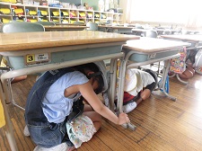 いつ起こるか分からない地震、子ども達は真剣に訓練に参加していました。