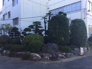 19日(月)、木本林業さんに、正門付近の西庭園を剪定していただきました。