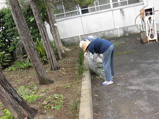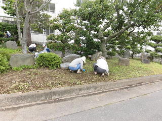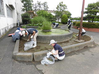 11名のボランティアの方々にご協力いただき、校舎裏の花壇の除草作業を行いました。