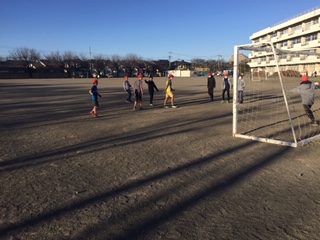寒い朝の校庭ですが、子どもたちは元気に外遊びをしています。