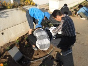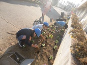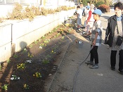 子ども達は慣れない手つきで、楽しそうに土に穴を開けて、きれいな花を植えていました。