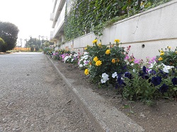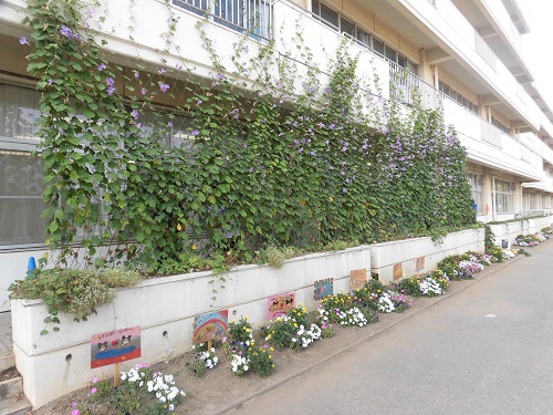 さて、職員室前では、3年生が水やりや草むしりを頑張っている花がきれいに咲いています。