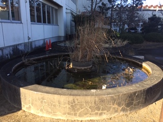 朝ごみ拾いをして、校舎の裏を回ると、ひょうたん池の氷がとけていることに気がつきました。