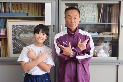 今朝は全校児童が校庭に出て、初めての応援練習です。