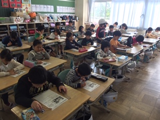 1年生~6年生までが、それぞれのワークシートの記事を読んで、考えたことをまとめていました。