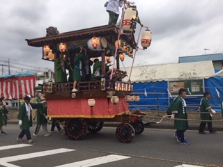 当日、山車に乗って祭り囃子を奏でる姿は、とても壮観でした。